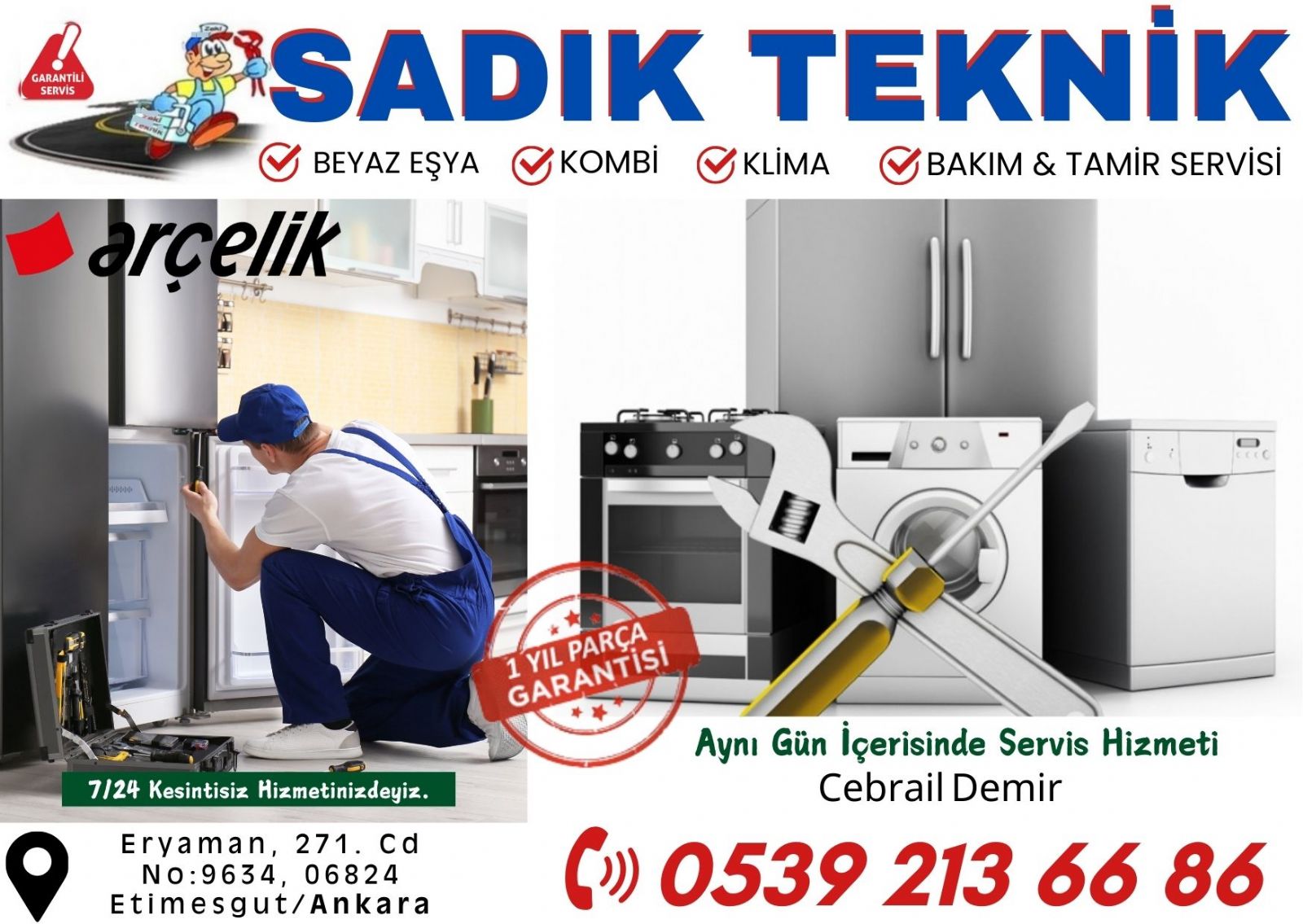 Eryaman Arçelik Servisi, geniş hizmet yelpazesi, profesyonel ekibi ve müşteri odaklı yaklaşımıyla bölgedeki en güvenilir teknik servislerden biri olmaya devam etmektedir. Arçelik marka beyaz eşyalarınızın arıza, bakım ve onarım ihtiyaçlarını karşılamak için hızlı, etkili ve uygun fiyatlı çözümler sunar. Cihazlarınızın performansını en üst düzeyde tutmak ve uzun ömürlü kullanım sağlamak için Eryaman Arçelik Servisi her zaman yanınızda.